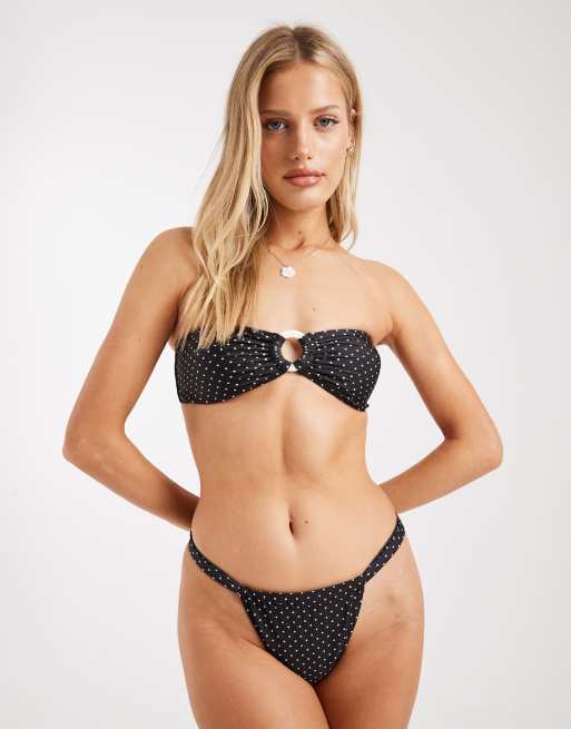 Brave Soul bandeau bikini top in black and white polka dot print