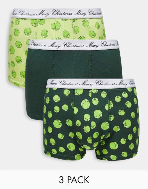 Brave Soul christmas brussel sprouts 3 pack trunks in green