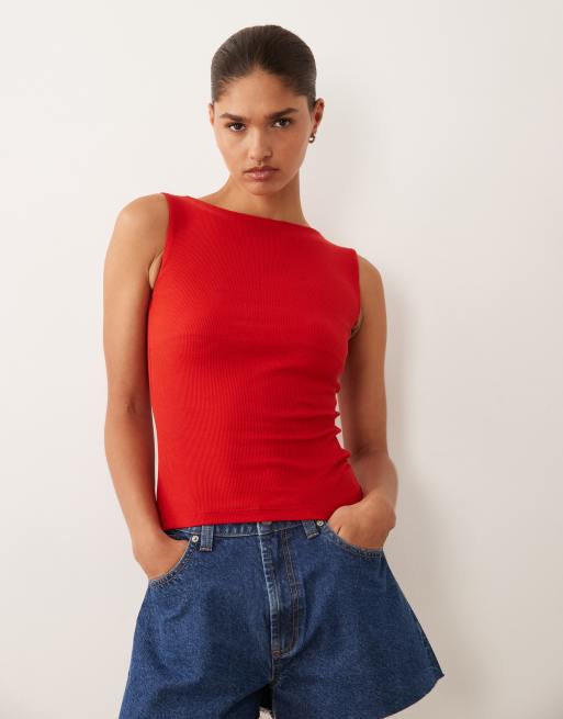 Brave Soul high neck singlet top in cherry red