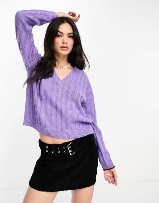 Brave Soul Martha ribbed v neck jumper in lavender