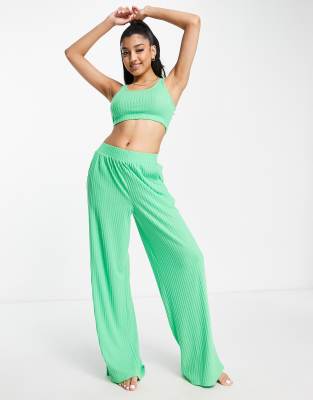 Brave Soul Nancy square neck crop and wide leg lounge set in bright green