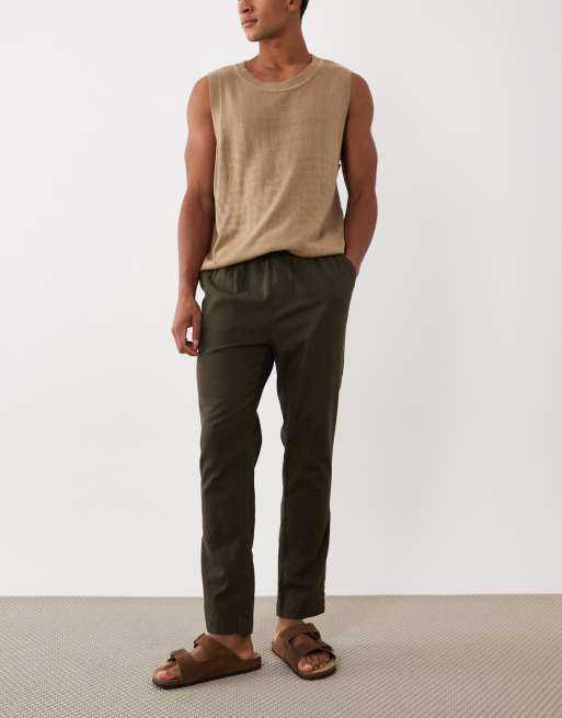 Brave Soul relaxed fit linen mix pants in khaki