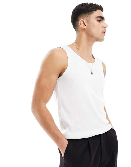 Brave Soul ribbed classic singlet in white