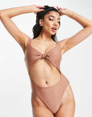 Brave Soul scoop neck cut out swimsuit in brown