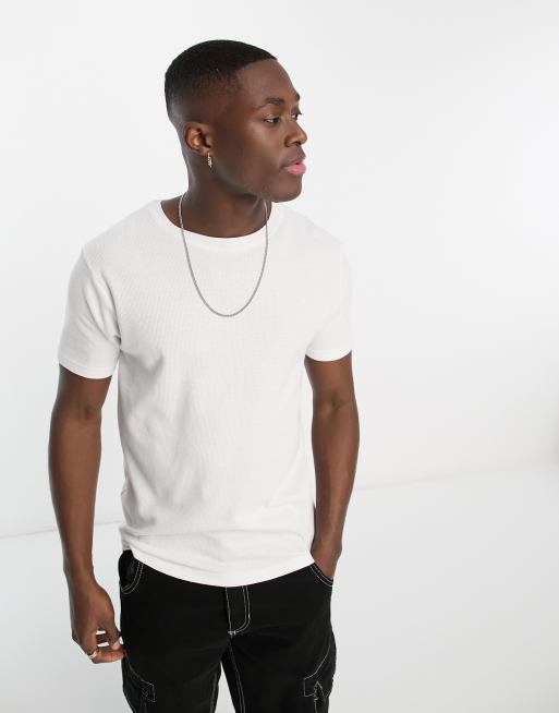 Brave Soul waffle stitch t-shirt in white
