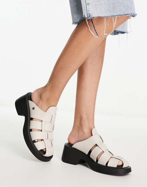 Bronx Vita fisherman mule leather sandals in off white