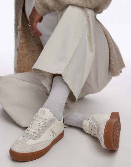 Calvin Klein Jeans classic cupsole sneakers in off white with gum sole