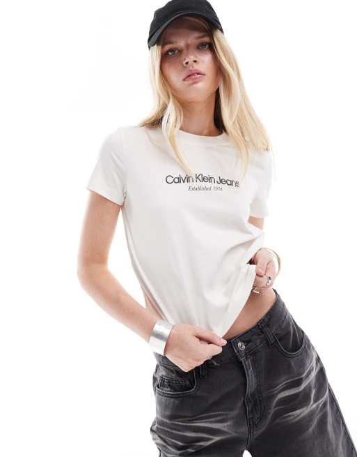 Calvin Klein Jeans Institutional graphic baby tee in white