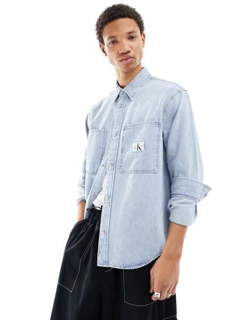 Calvin Klein Jeans logo patch denim shirt in light blue wash