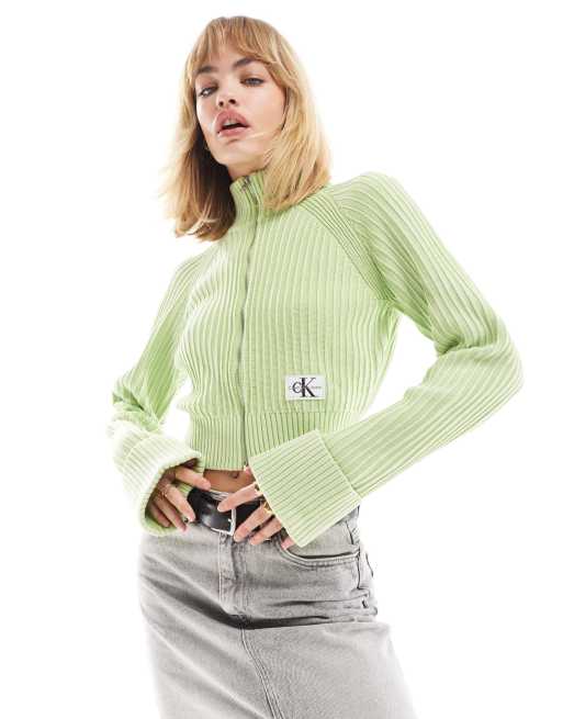 Calvin Klein Jeans monogram logo sweater cardigan in mint
