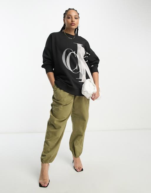 Calvin Klein Jeans Plus lightbox monogram logo sweatshirt in black