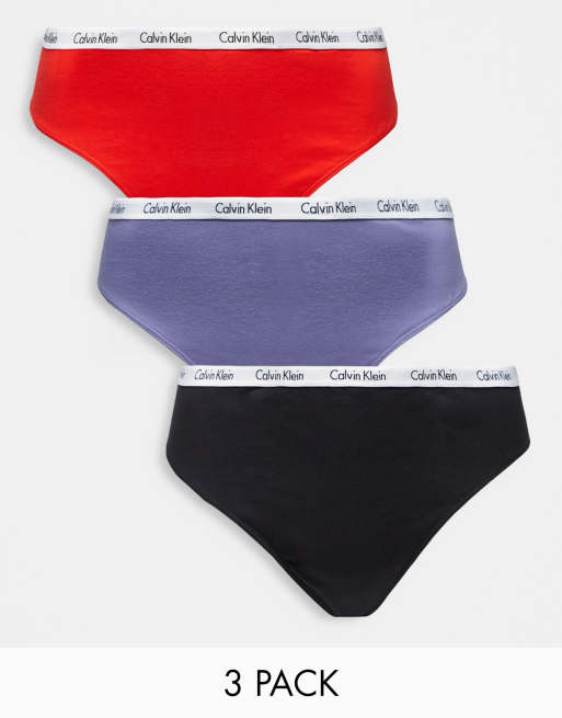 Calvin Klein 3 pack thong in terracotta lilac and black