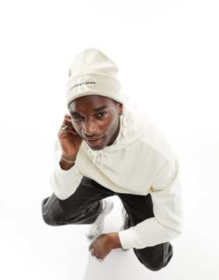 Calvin Klein Jeans monogram logo embroidered beanie in taupe