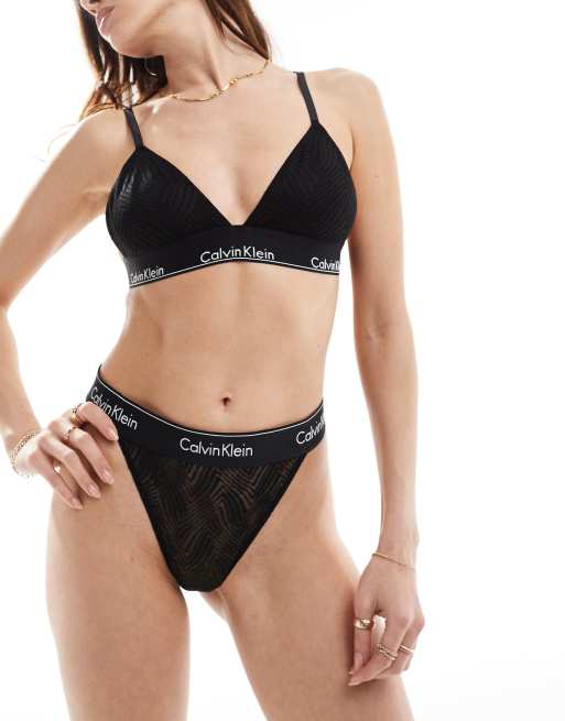 Calvin Klein Modern Lace lightly lined triangle bralet in black