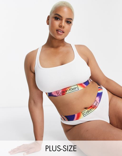 Calvin Klein Plus Size Reimagined Pride cotton blend unlined bralet in white - WHITE