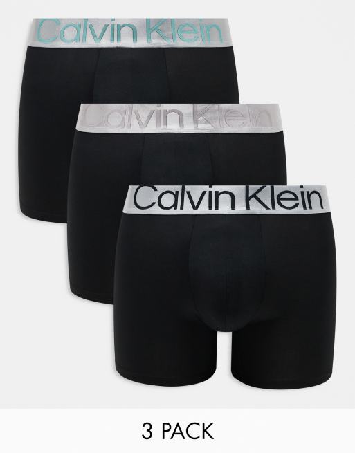 Calvin Klein Steel 3 pack boxer briefs with coloured logo waistband in black