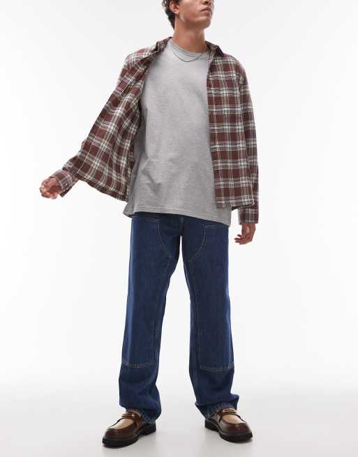 - Non-stretch denim: mid-blue wash
