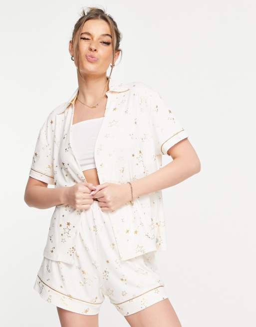 Chelsea Peers mini star print short pyjama set in cream
