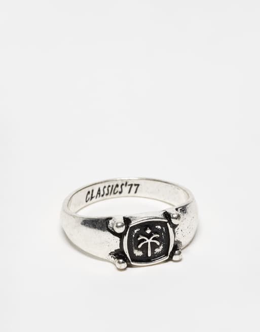 Classics 77 palm tree engraved signet ring in silver tone