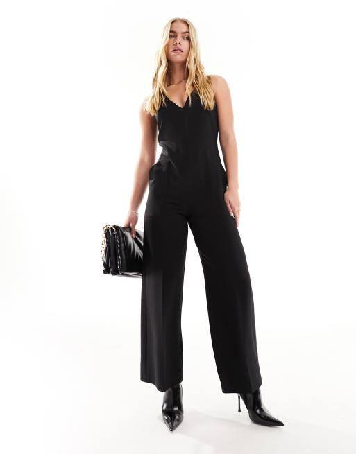 Closet London tailored pinafore jumpsuit with pockets in black