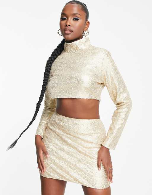 Collective the Label exclusive sequin mini skirt in gold (part of a set)