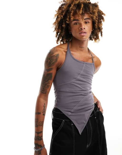 COLLUSION asymmetric halter muscle singlet top in grey