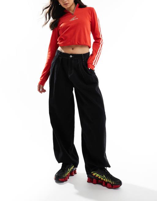 COLLUSION baggy parachute jeans with contrast stitch in black