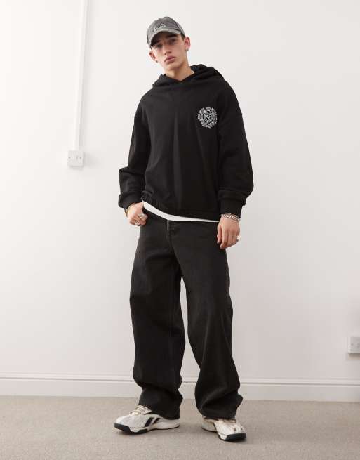 COLLUSION boxy cropped hoodie in black with logo emblem