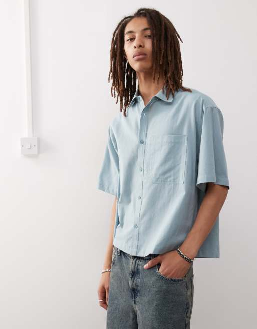 COLLUSION boxy linen-blend short sleeve shirt in dusty blue