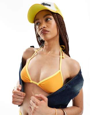 COLLUSION contrast binding triangle bikini top in orange (part of a set)
