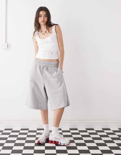 COLLUSION double-waistband longline tracksuit shorts in grey marl