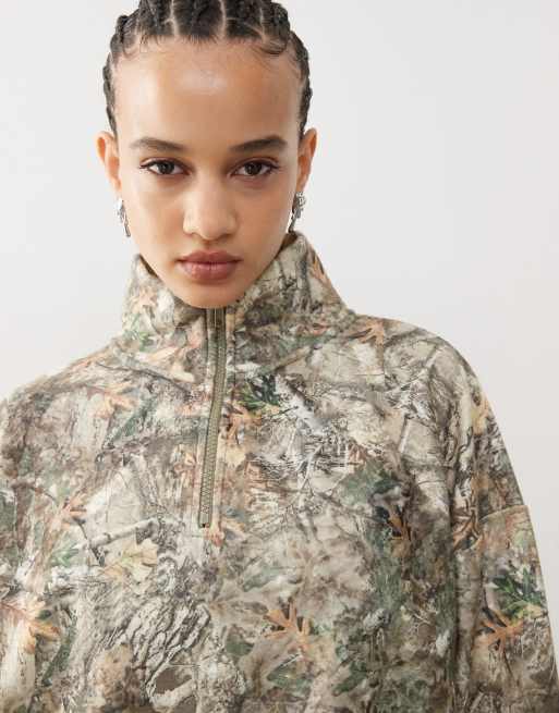 COLLUSION funnel neck woodland camo fleece pullover jumper