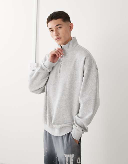 COLLUSION half zip funnel neck t-shirt in grey marl