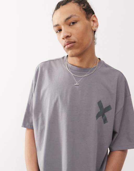 COLLUSION heavyweight t-shirt in washed grey with X logo