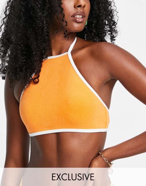 COLLUSION high neck bikini top in orange towelling (part of a set) - ORANGE