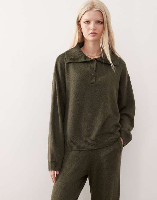 COLLUSION knitted oversized button-up jumper in khaki (Part of a set)