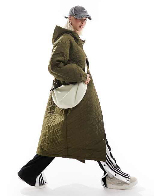 COLLUSION lightweight longline hooded padded jacket in khaki