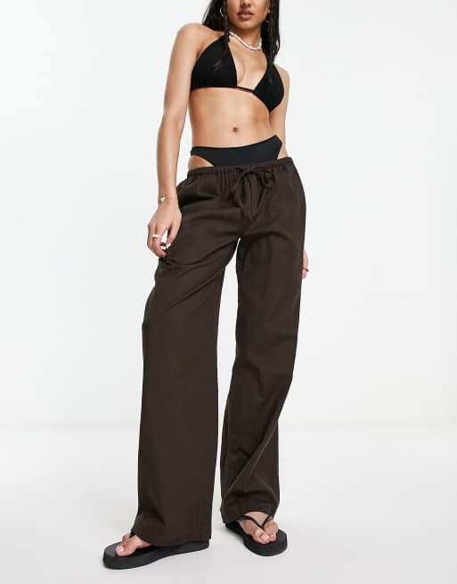 COLLUSION linen low rise beach pants in brown