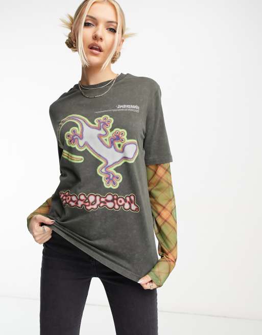 COLLUSION lizard printed t-shirt with mesh sleeves in multi