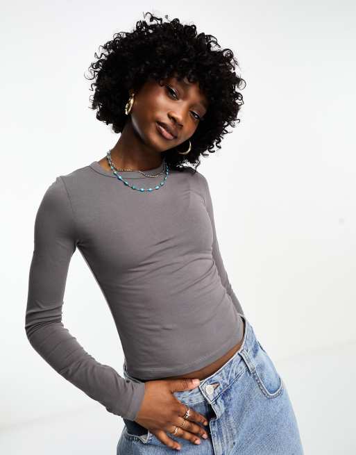 COLLUSION long sleeve fitted top in grey
