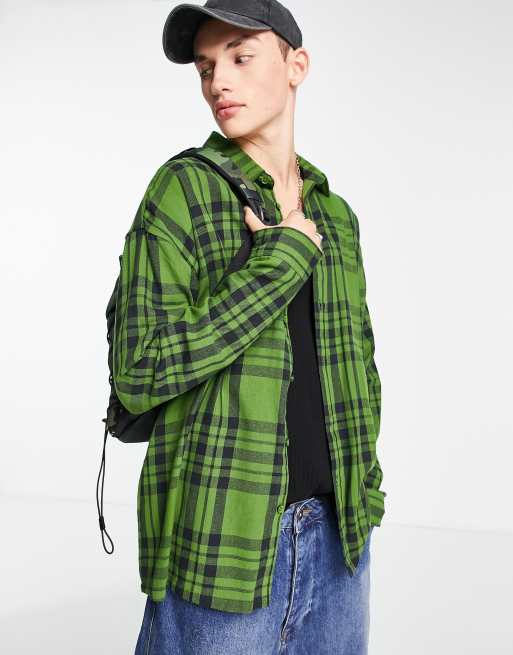 COLLUSION oversized check shirt in green