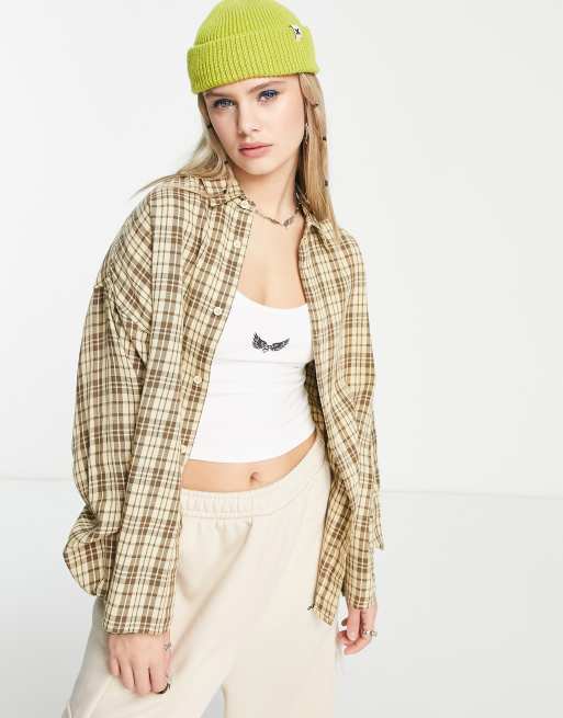 COLLUSION oversized check shirt in neutral