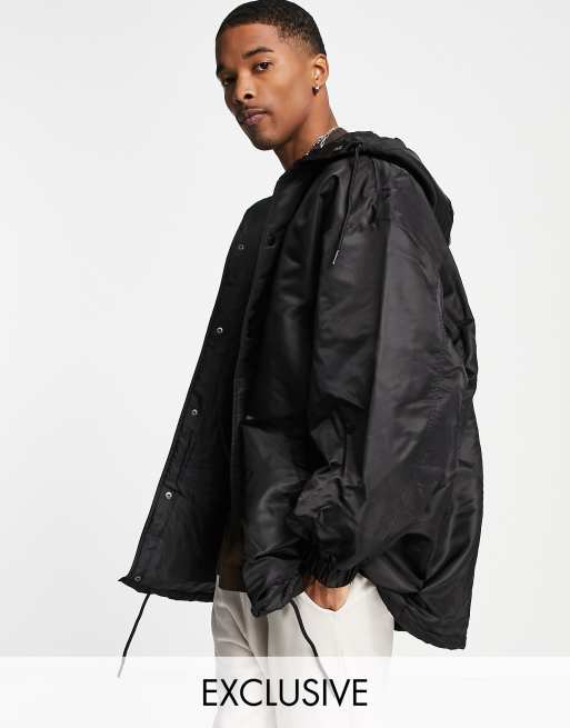 COLLUSION oversized coat with hood in black