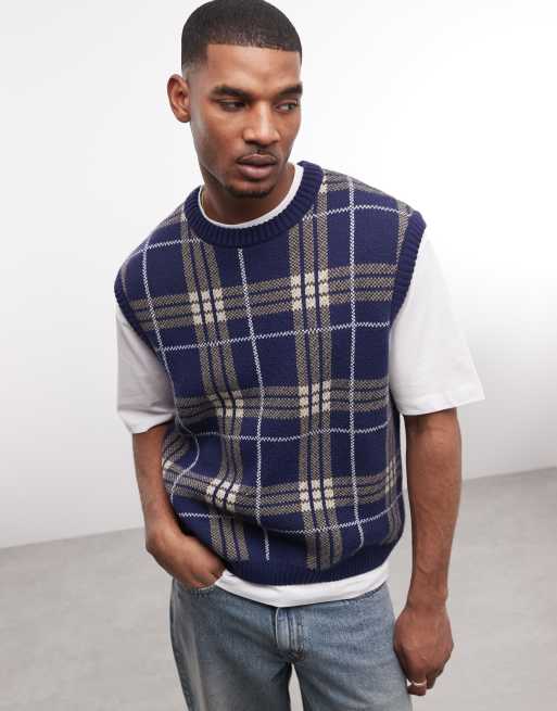 COLLUSION oversized knitted singlet in navy check