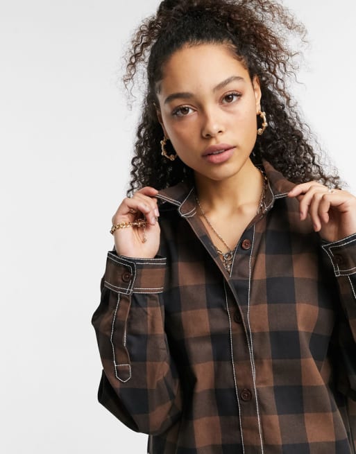 COLLUSION oversized shirt, corset top and pants co-ord in brown check