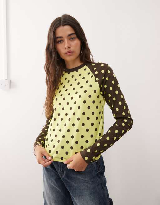 COLLUSION raglan shrunken t-shirt in contrast polka dot