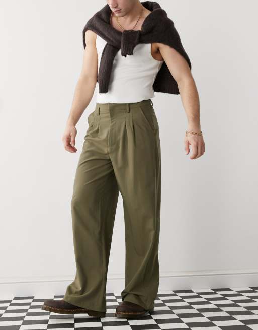 COLLUSION relaxed wide leg tailored pants in olive