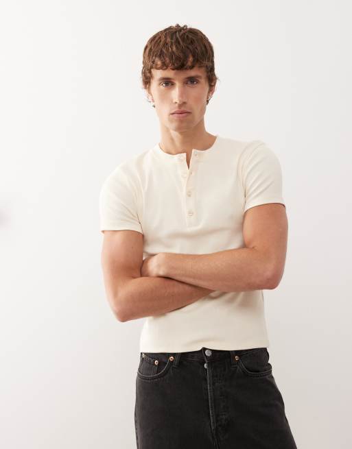 COLLUSION ribbed muscle short sleeve henley t-shirt in stone
