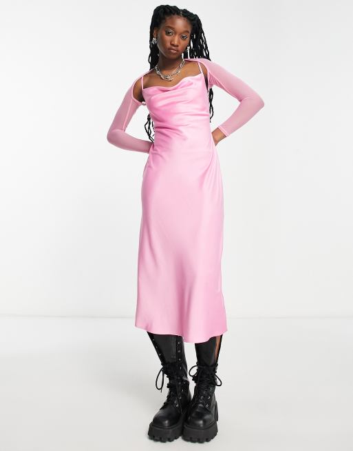 COLLUSION satin midi cowl neck midi dress with matching shrug in pink