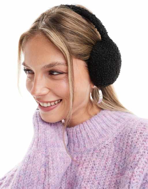 COLLUSION shearling earmuffs in black